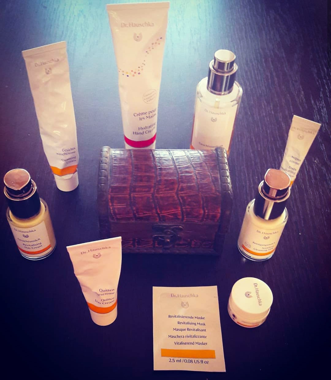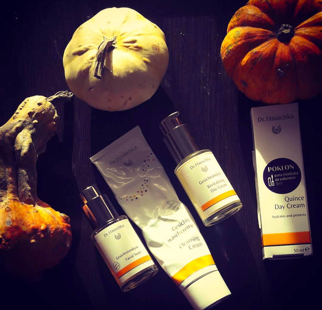 Kao poslednji korak dnevne nege, koristim naizmenično revitalizujuću dnevnu kremu i kremu od dunje. Tokom proleća i leta, moja dehidrirana koža blista uz dnevnu revitalizujuću kremu, dok se u jesenjem i zimskom periodu, zbog predivnog mirisa odlučujem za kraljicu jeseni- njeno veličanstvo- krema od dunje. Osvežava i štiti, zadržavajući pri tom vlagu u koži. Ako je koži potrebna podrška i dodatna nega, tu su Dr Hauschkine maske za lice. Moj favorit je maska za regeneraciju.