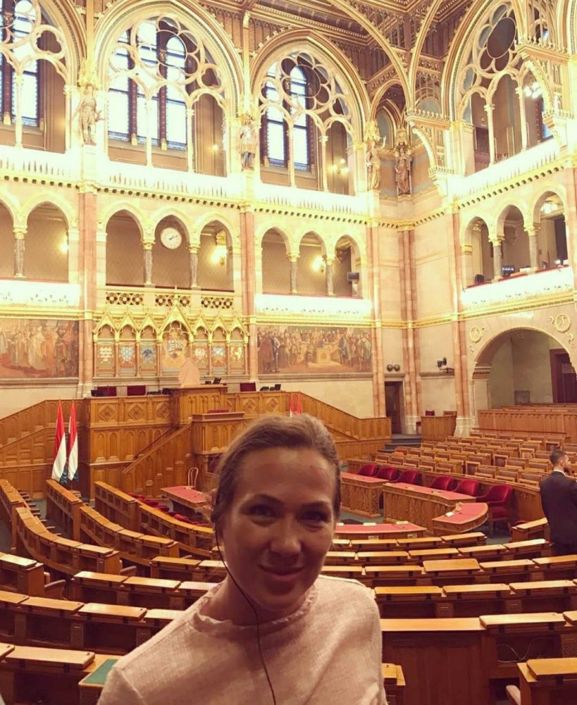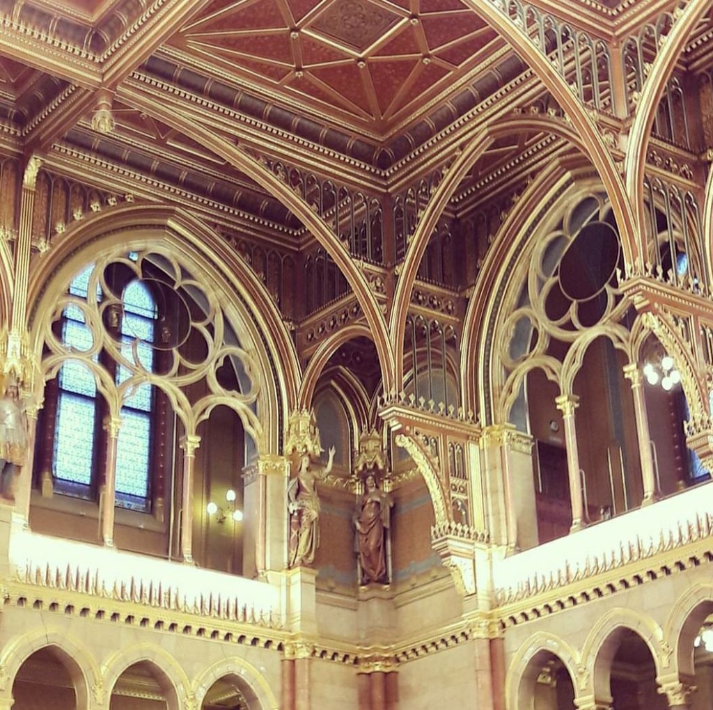 Mađarski parlament je treći po veličini na svetu sa 690 prostorija i 18 000 m2 i moguće je otići u organizonani obilazak na engleskom jeziku. Na moju sreću, nije bilo zasedanja parlamenta, tako da sam mogla da zavirim u salu Parlamenta. Najčuvaniji a ujedno i najznačajniji eksponat u Parlamentu je kruna Svetog Ištvana( Stefana) koja se nalazi i na zastavi Mađarske. Stražari mirno stoje pored nje, čuvaju je kao deo svoje istorije i smenjuju se često. Smena stražara kojoj sam prisustvovala je čitava procedura, mirno, sa puno poštovanja. Isto tako stražari se smenjuju u čuvanju zastave isped samog Parlamenta u Budimpešti .