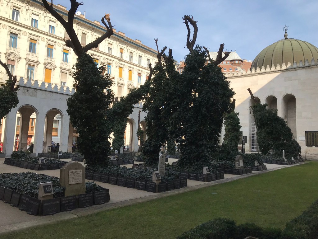 U dvorištu sinagoge nalazi se sahranjeno više od 2000 ljudi koji su umrli od zime i gladi. A takodje se nalazi i memorijalni park, spomenik u obliku drveta izgrađen od metala i predstvalja žalosnu vrbu na čijim je listovima vajar ispisao imena od nekoliko hiljada Jevreja stradalih u Mađarskoj tokom Drugog svetskog rata. Kada duva vetar čućete tužno njihanje i zveckanje ovih listova.