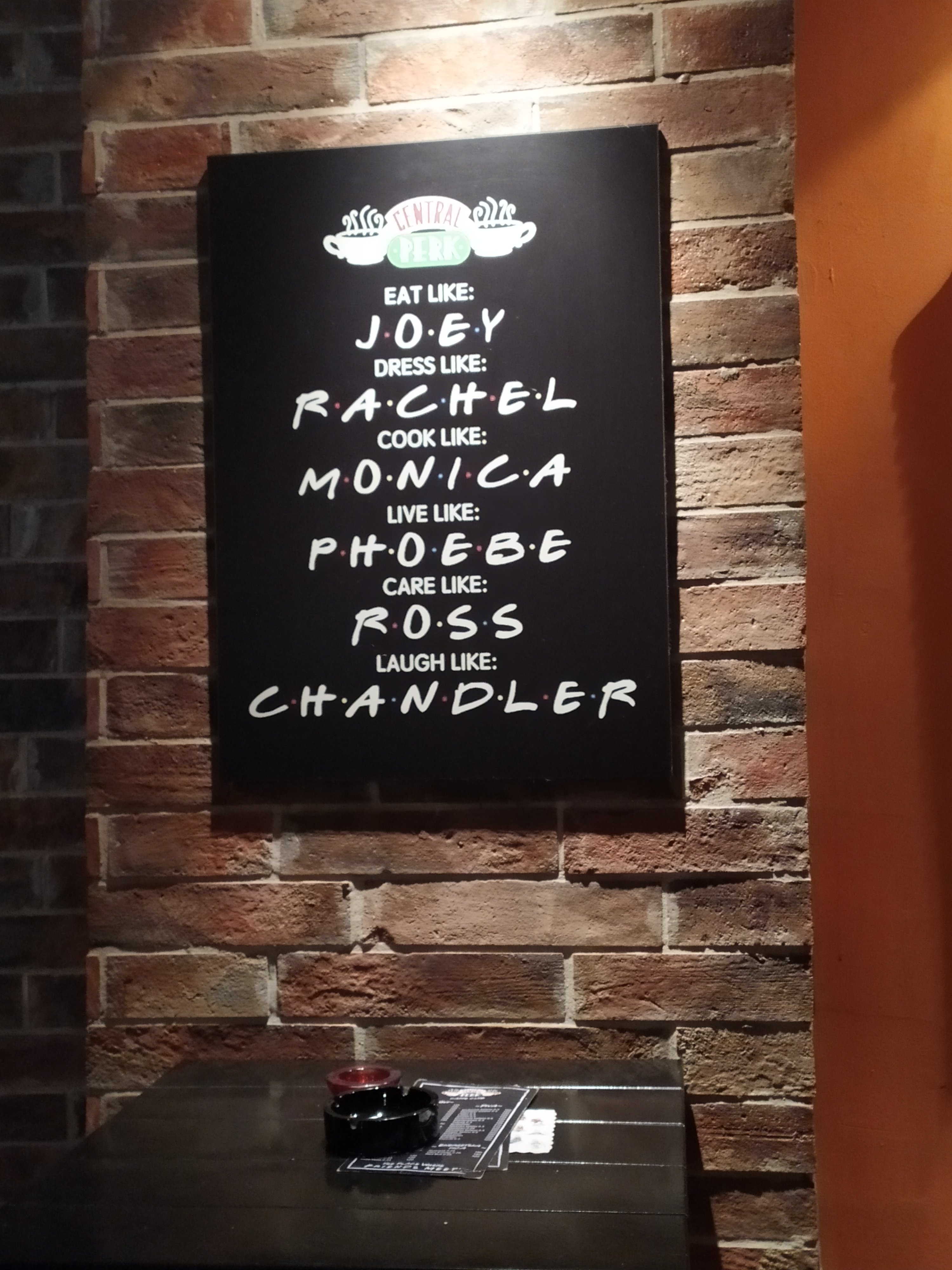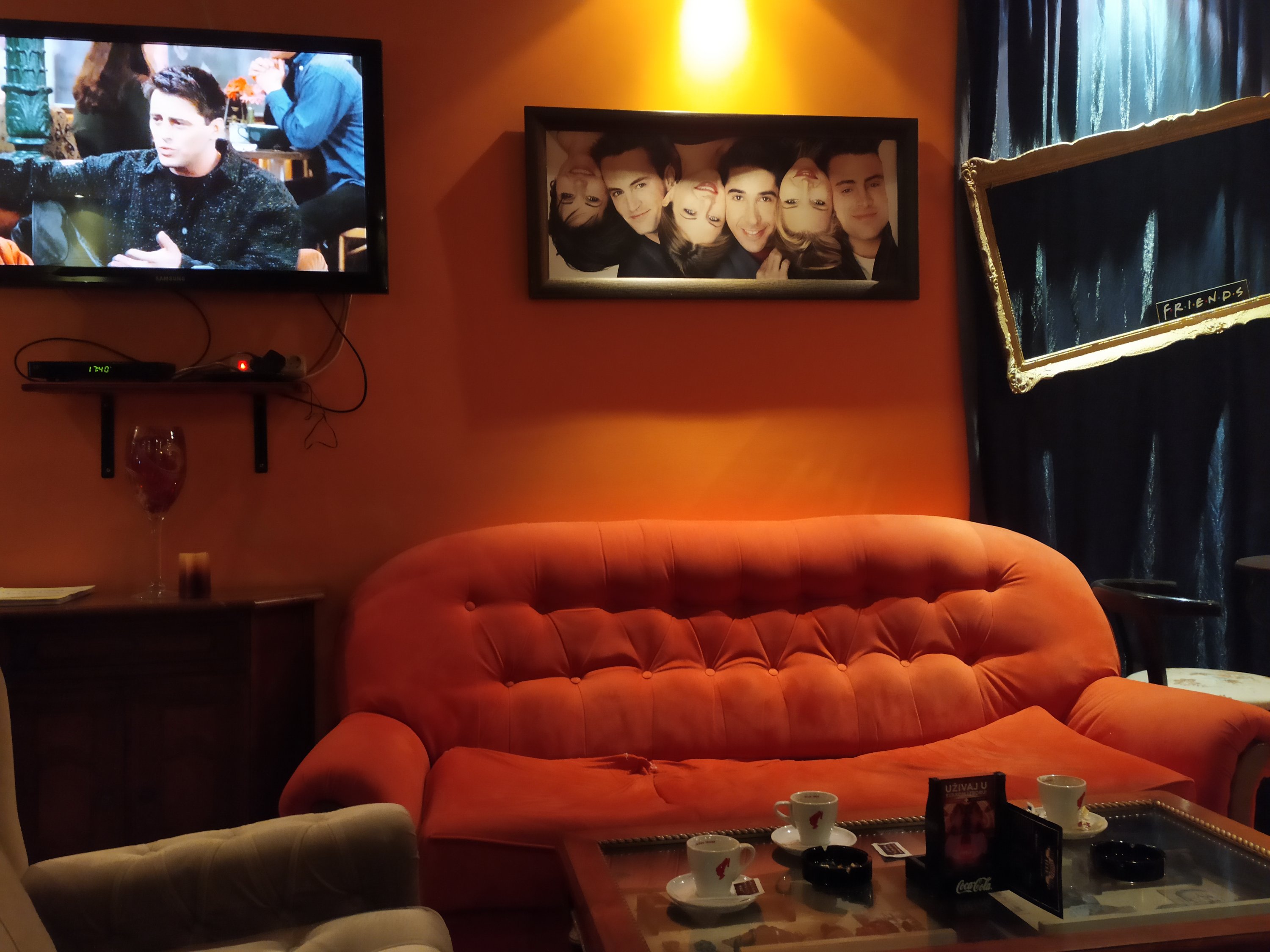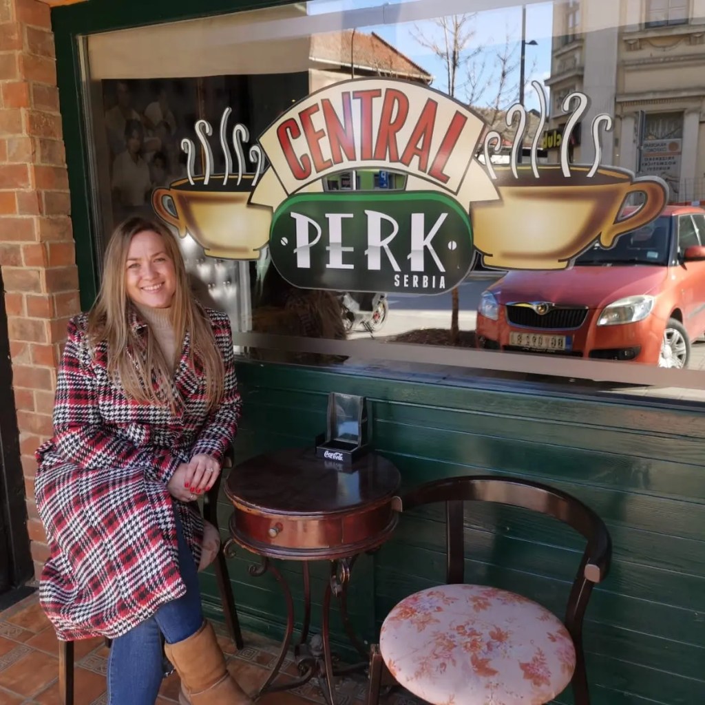Koliko smo samo puta, gledajući seriju koja je obeležila dobar deo našeg života, poželeli da popijemo kafu u Central Perk kafeu, dodirnemo žice gitare presmešne Fibi dok zamišljamo zvuke čuvene pesme Smelly cat, da osetimo atmosferu Monikine kuhinje, da boravimo u njihovoj dnevnoj sobi ili da odigramo partiju stonog fudbala kao Džoi i Čendler?! Sada je to moguće u mom rodnom gradu! Ugostitelj iz Zrenjanina napravio je u ulici Kralja Petra I vernu repliku čuvenog Central Perka. Ideju je dobio prilikom boravka u Singapuru gde se takođe nalazi jedan ovakav kafic. Skoro sam potpuno sigurna da će mu biti zahvalni svi posetioci koji nogom kroče u Central Perk.