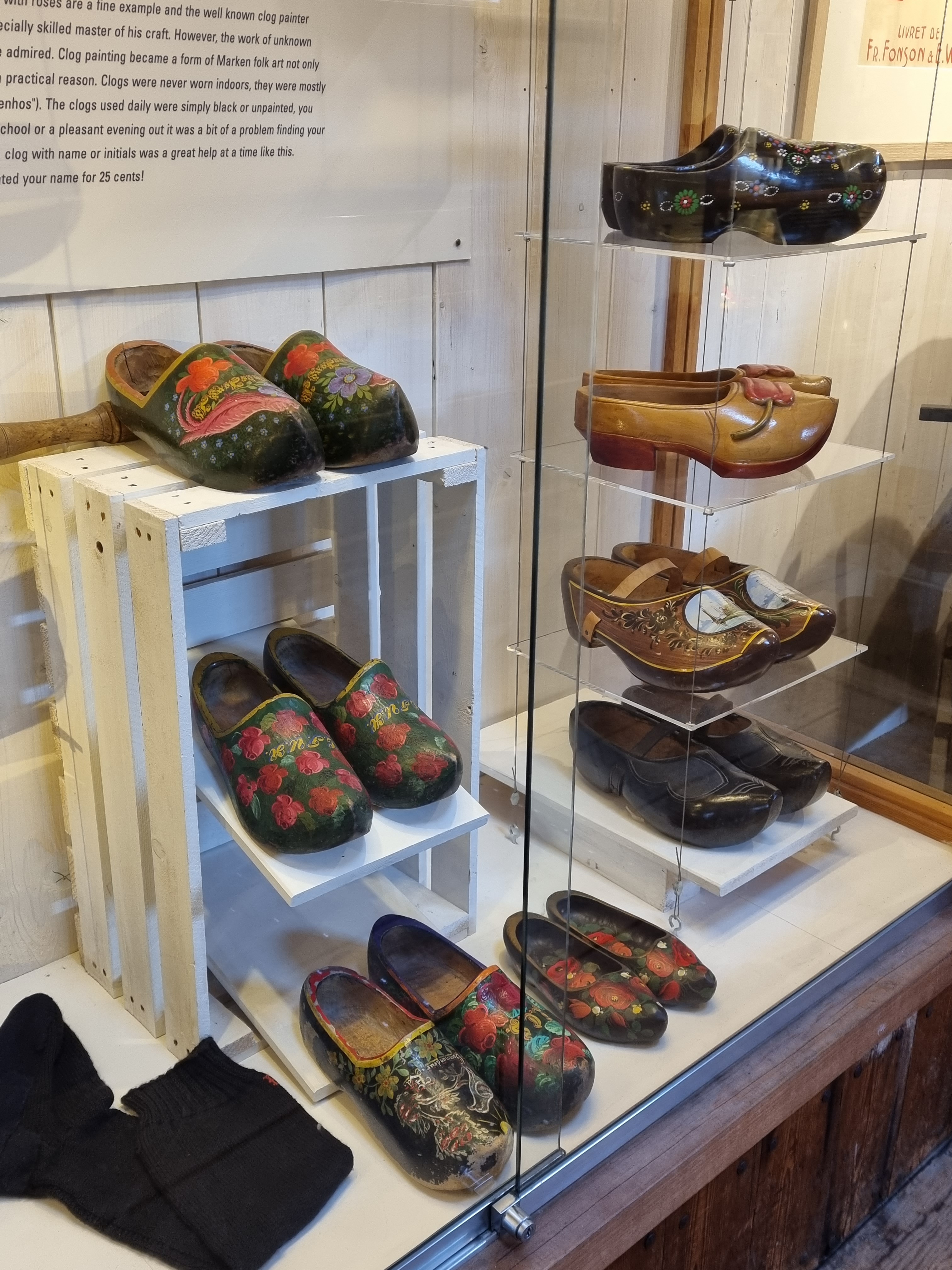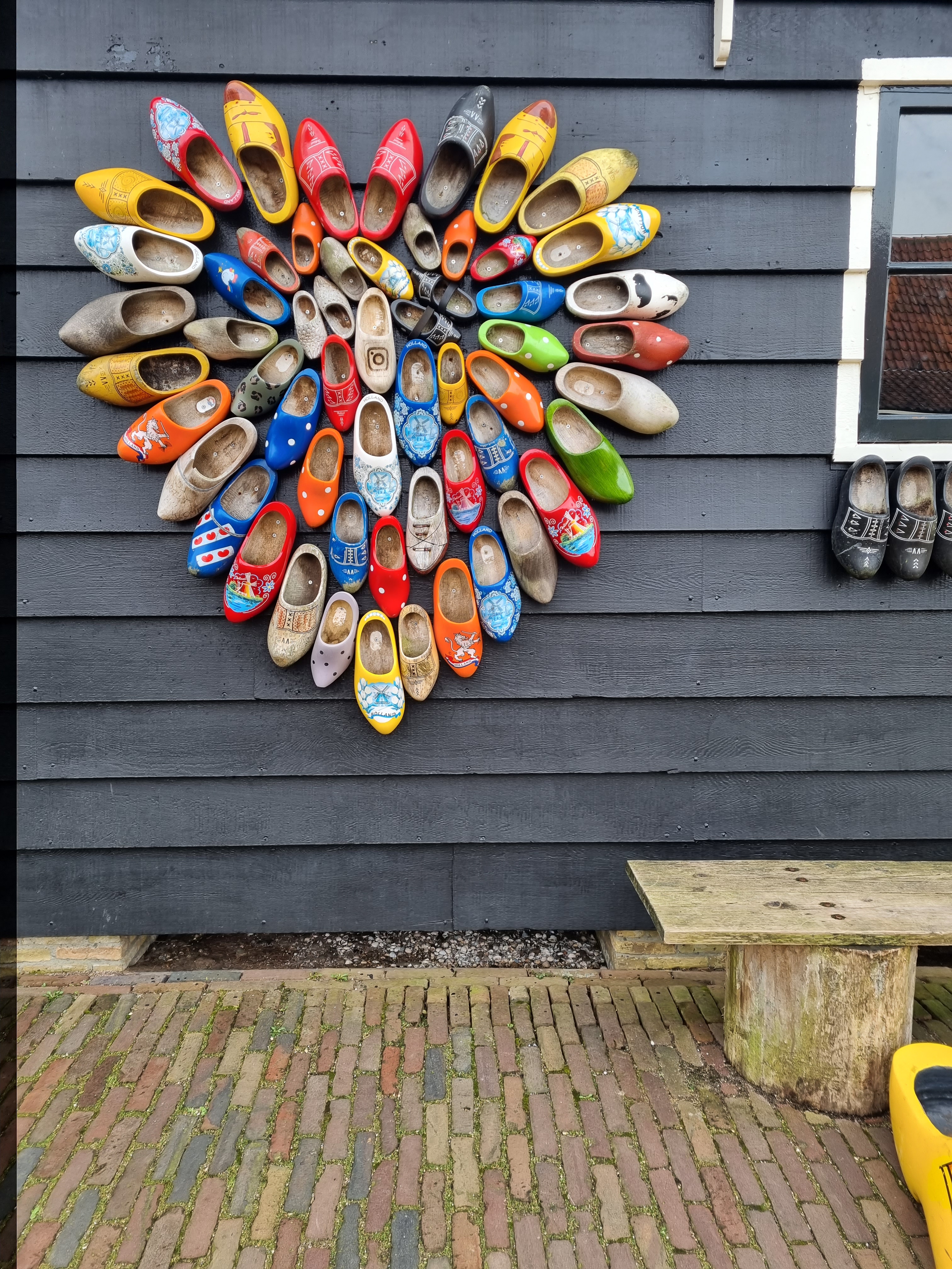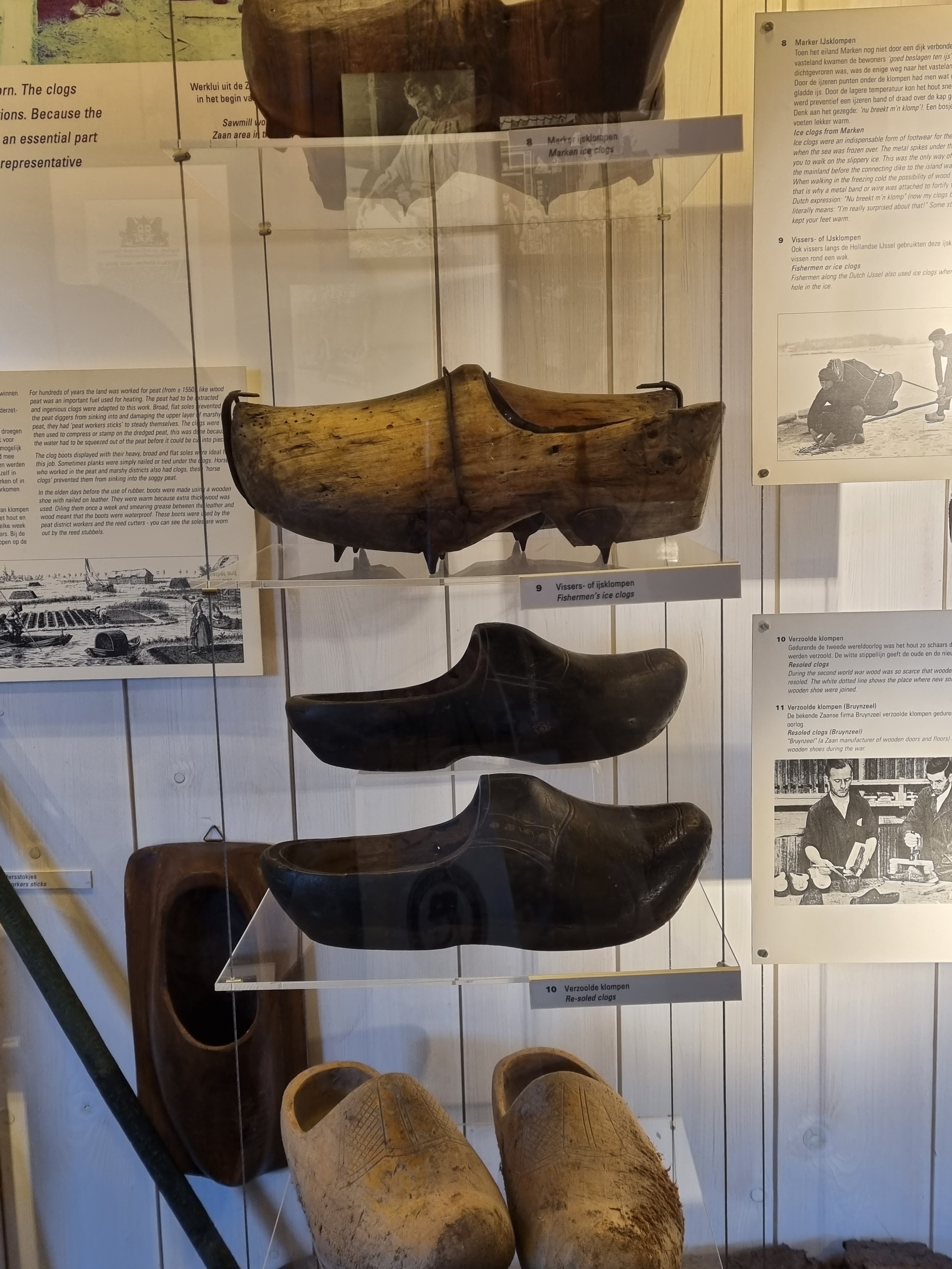 Zatim šetamo dalje selom i nailazimo na predivne i čuvene klompe! Pored raznih izloženih modela mogli smo videti i kako to izgleda proizvodnja istih kao i vitrinu sa klompama različitih boja, dezena iz različitih vremena. Šolje i privesci u obliku klompi, sve poželite da kupite ali znate da ne možete. 🙂 U samom selu ima životinja i još nekoliko vetrenjača. Sve odiše mirom. Tu bih mogla da živim, ali u samom Amsterdamu ne, prevelik je grad za moju dušu koja voli mir.