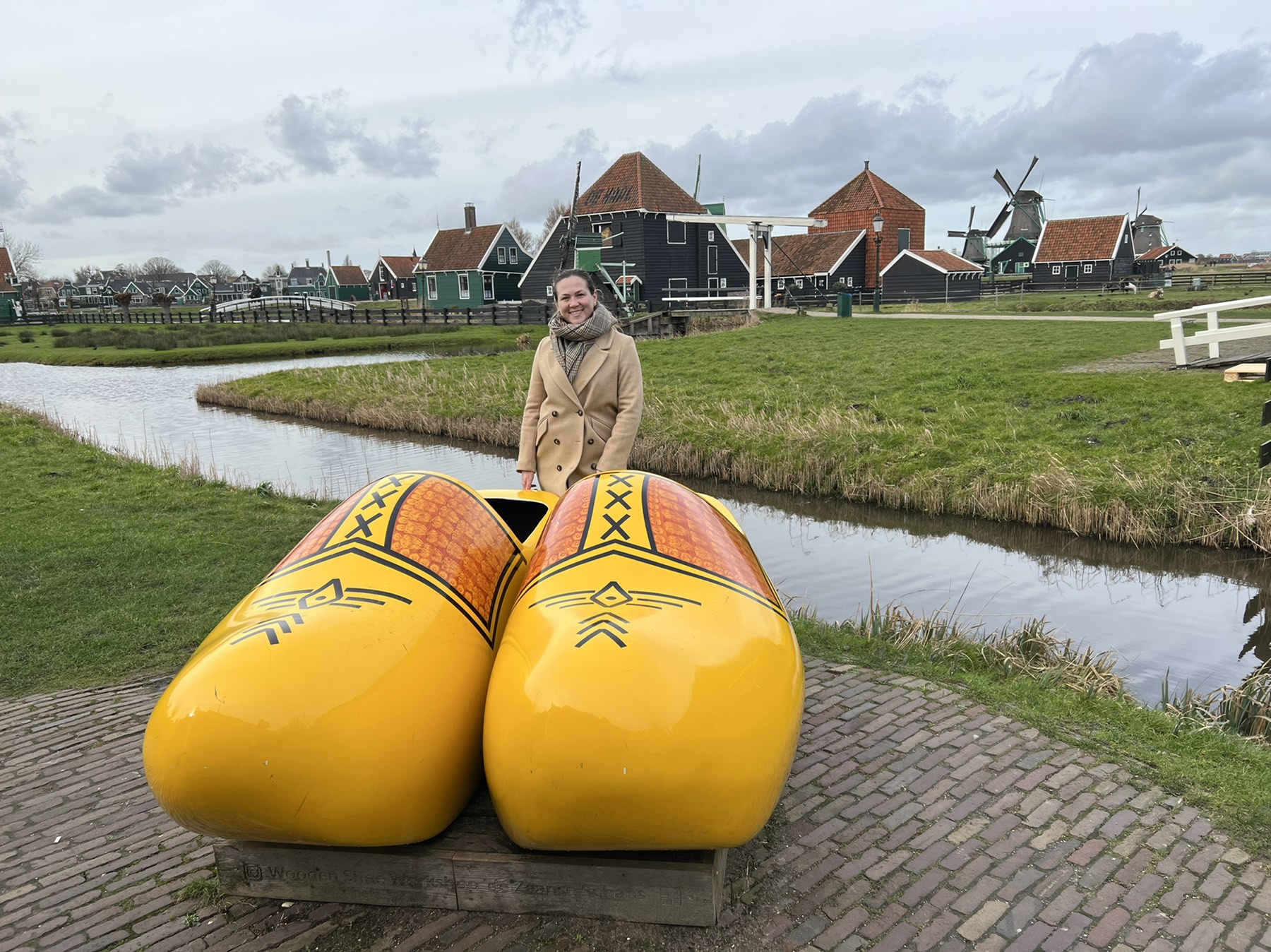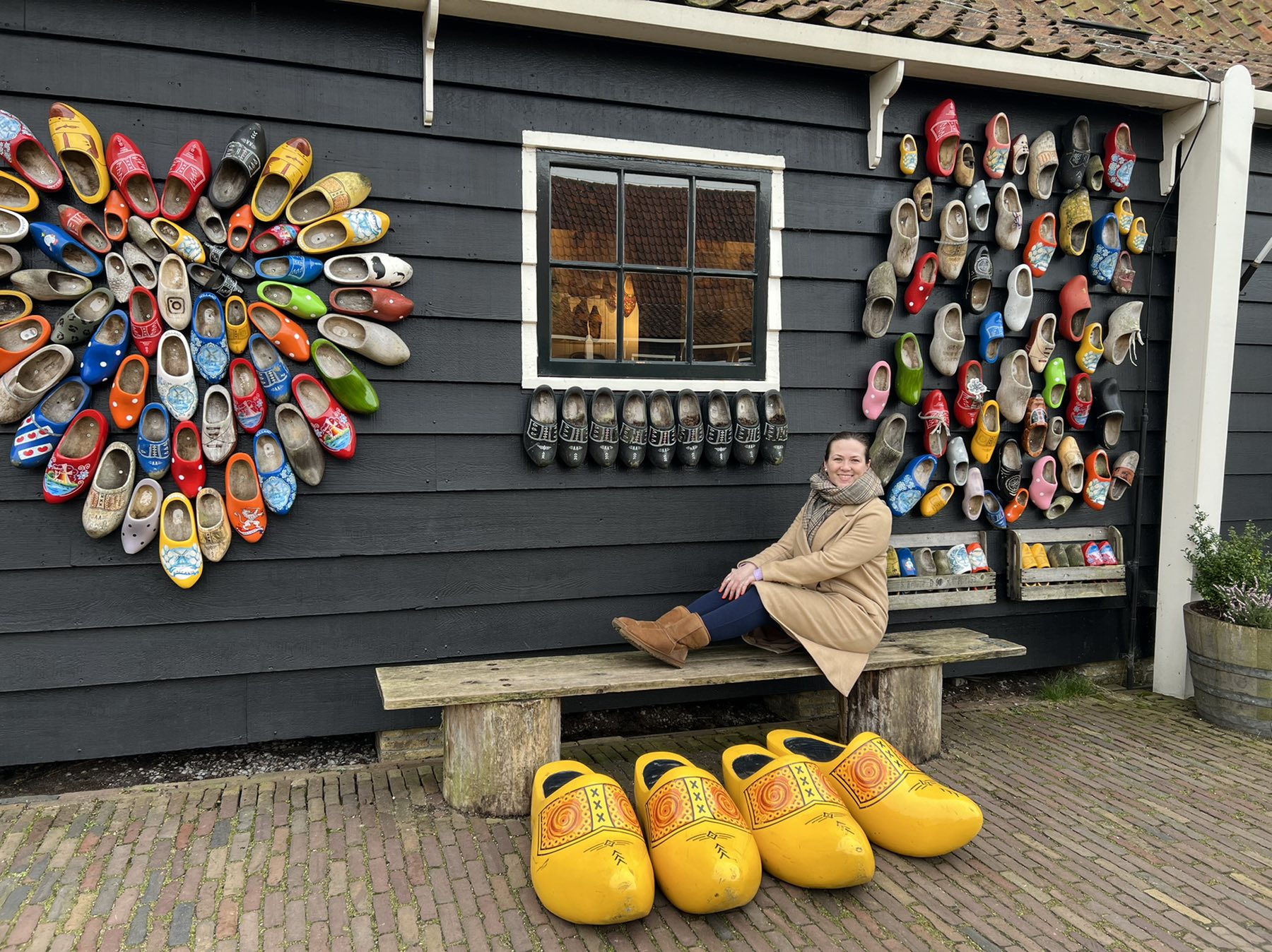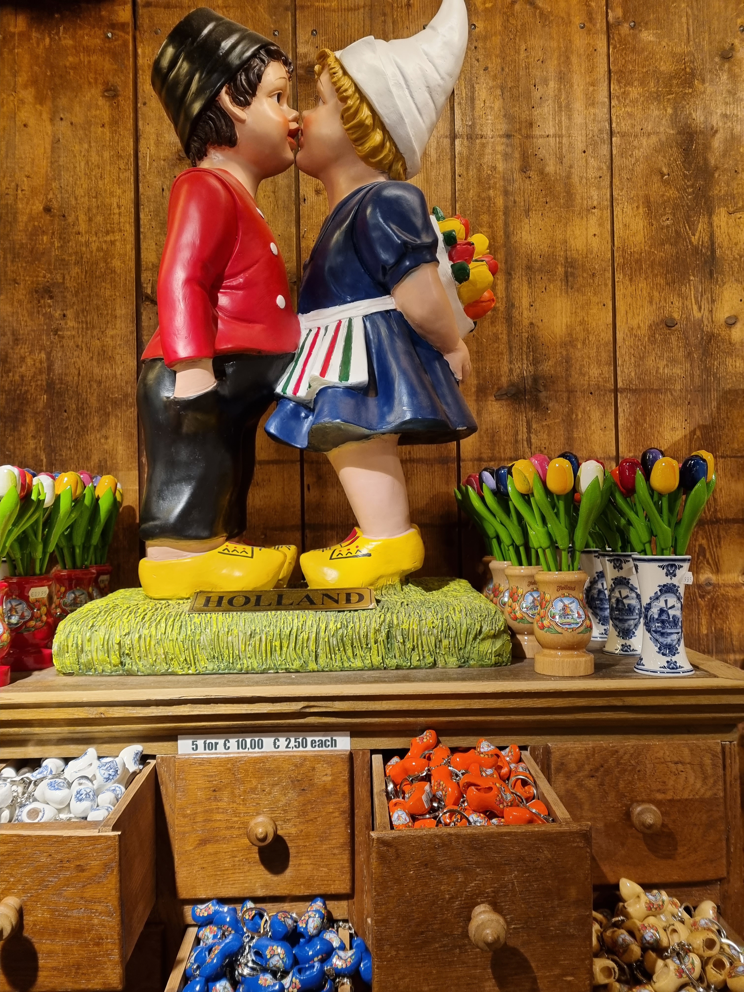 Zatim šetamo dalje selom i nailazimo na predivne i čuvene klompe! Pored raznih izloženih modela mogli smo videti i kako to izgleda proizvodnja istih kao i vitrinu sa klompama različitih boja, dezena iz različitih vremena. Šolje i privesci u obliku klompi, sve poželite da kupite ali znate da ne možete. 🙂 U samom selu ima životinja i još nekoliko vetrenjača. Sve odiše mirom. Tu bih mogla da živim, ali u samom Amsterdamu ne, prevelik je grad za moju dušu koja voli mir.