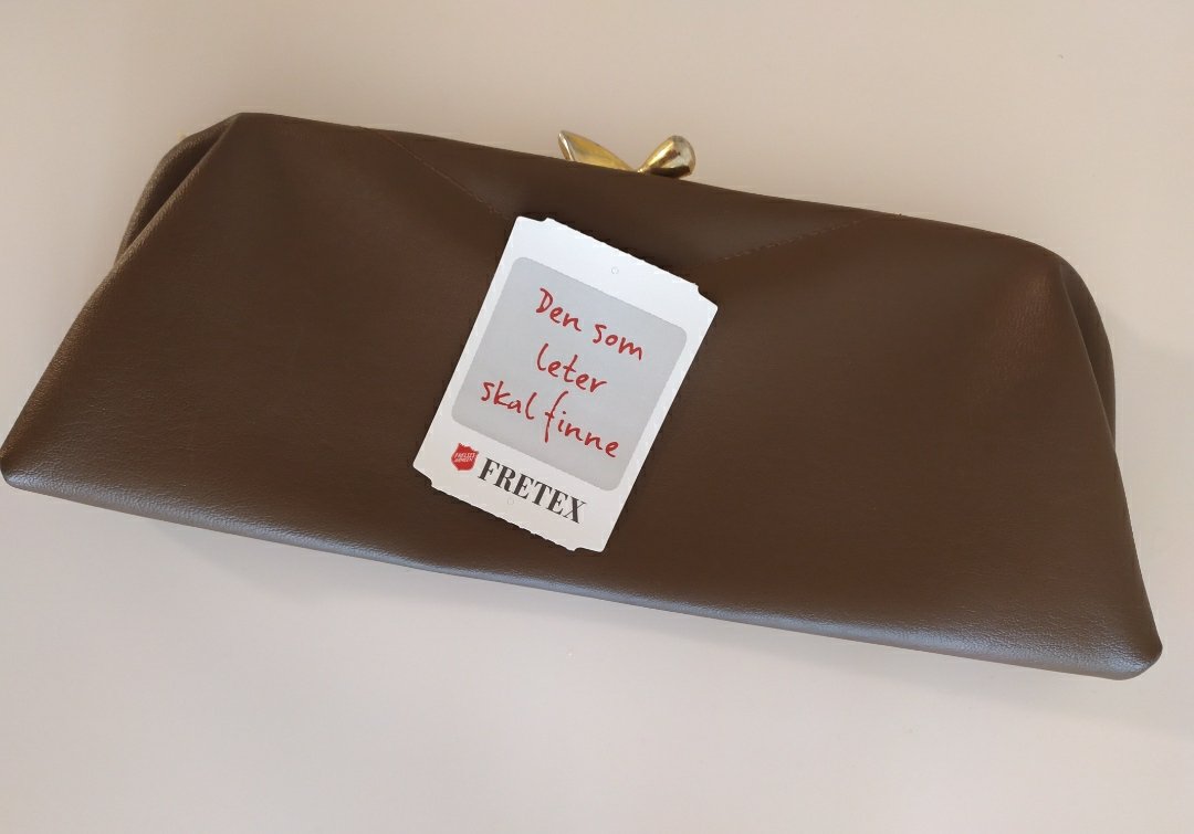U jednoj od mnogobrojnih Fretex radnji, kojih je Δak 42 u NorveΕ‘koj, pronaΕ‘la sam divan retro novΔanik. A ono Ε‘to je posebno privuklo moju paΕΎnju su naslovi koji stoje na svim etiketama prikaΔenim za stvari. To je reΔenica koja glasi – ONAJ KOJI TRAΕ½I, NAΔI ΔE.
